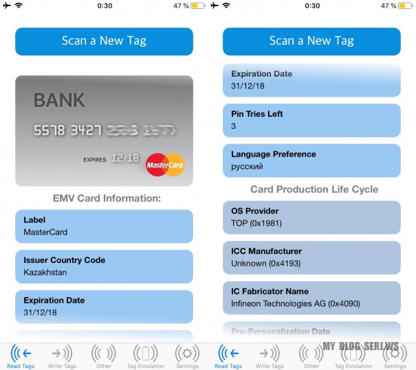 Скрытые возможности iPhone)) Вышло обновление NFCWriter X позволяющие читать, записывать, эмулировать. Тестировал на банковской карте. Скачать можно в Cydia.